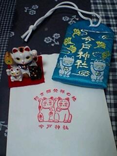 御守と招き猫の置物を買ってきました。