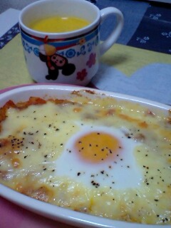 お米が切れて(今日買いましたが)、家にあるもので食事を…