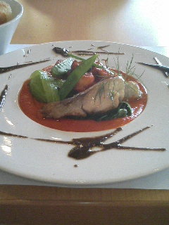 メインのお魚のポワレですが、ソースが何の味かわからないんだけど