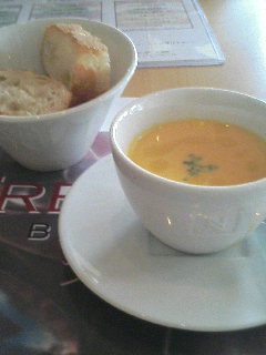 先にでてきたカボチャの冷製ポタージュはカボチャの甘みが