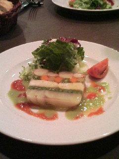 前菜:エビとホタテと野菜のコンソメゼリー寄せ