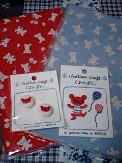あと、新商品の生地とボタンも購入。水色生地とアップリケは